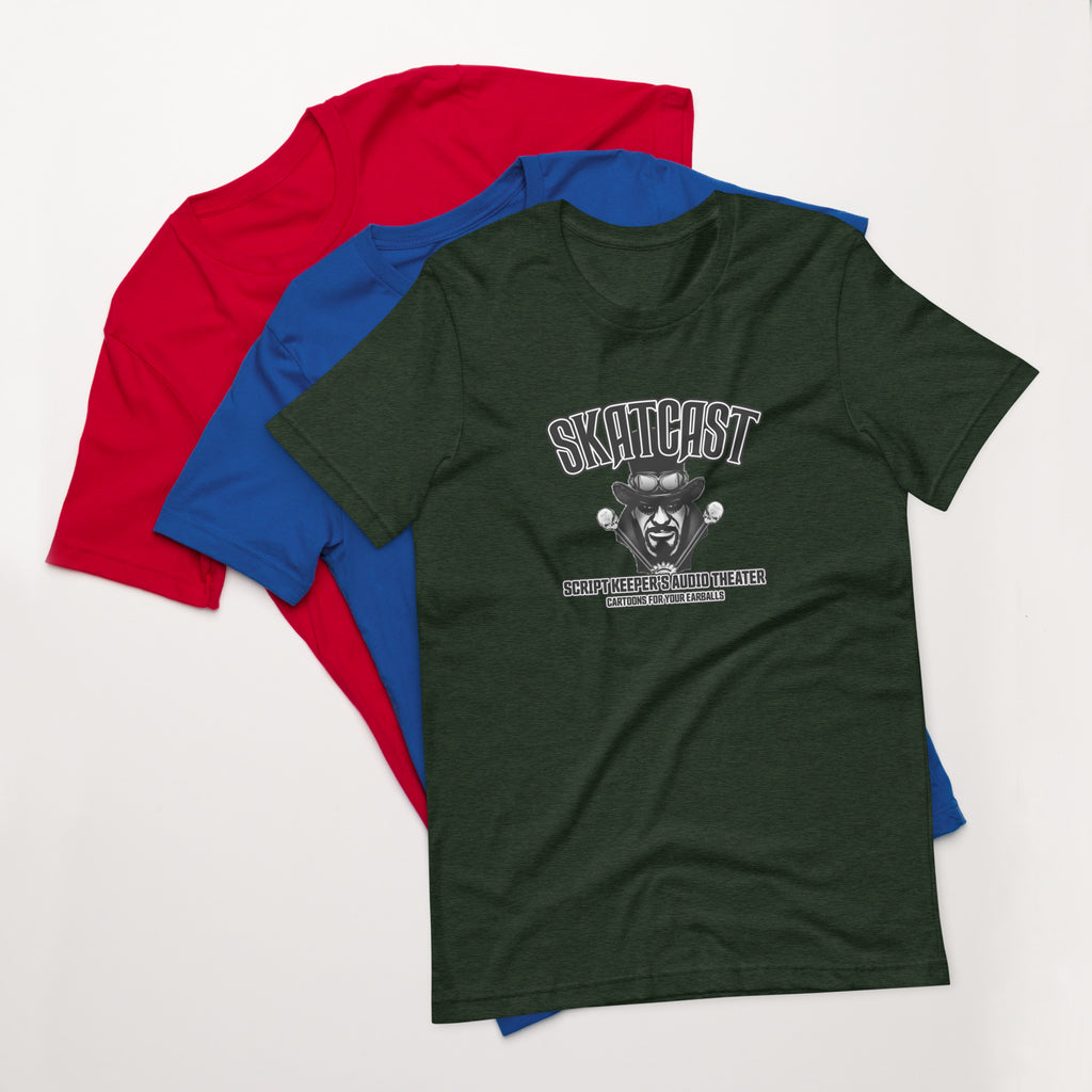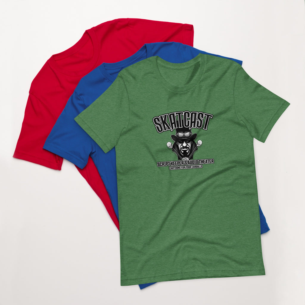 This SKATCAST t-shirt is everything you've dreamed of and more for people who want to wear the Script Keeper's face on their chests. It feels soft and lightweight, with the right amount of stretch. It's comfortable and flattering for all.